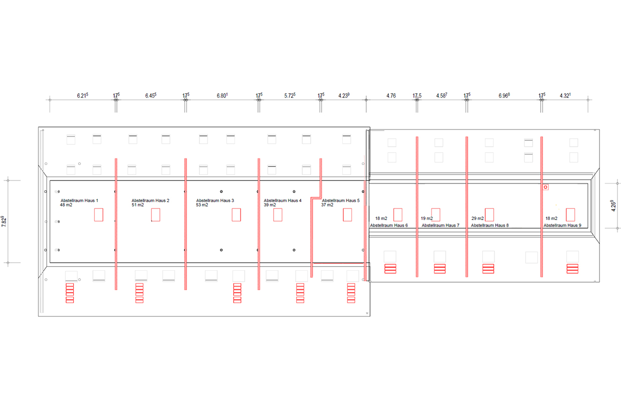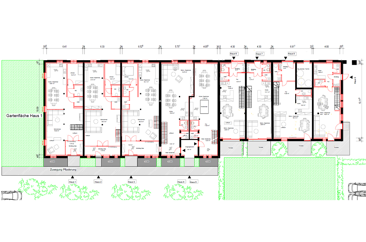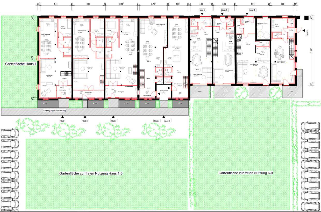Die neun Wohneinheiten warten darauf mit folgender Architektur und Aufteilung bewohnt zu werden:
