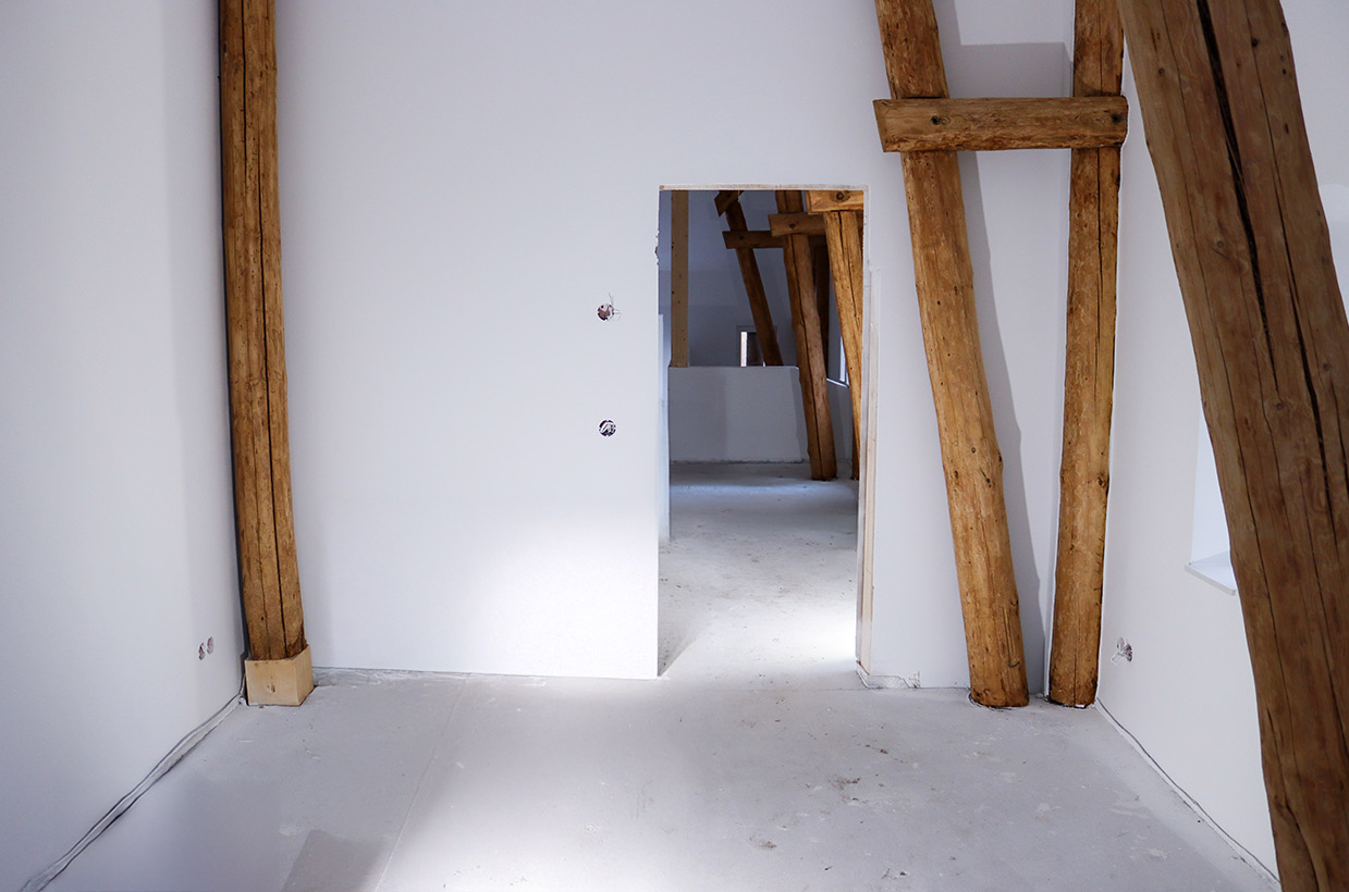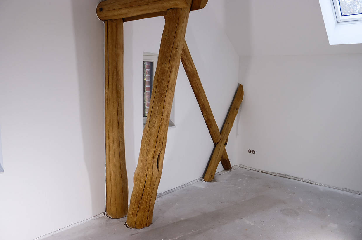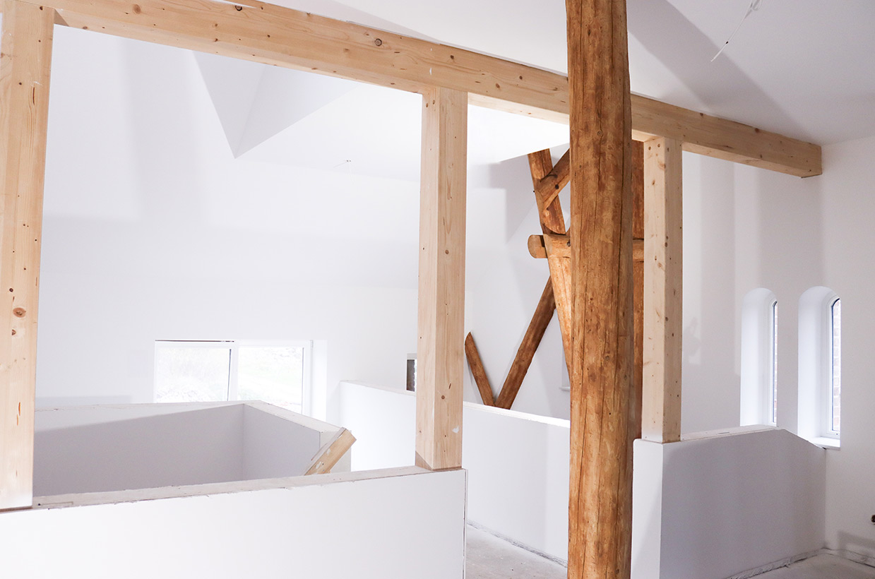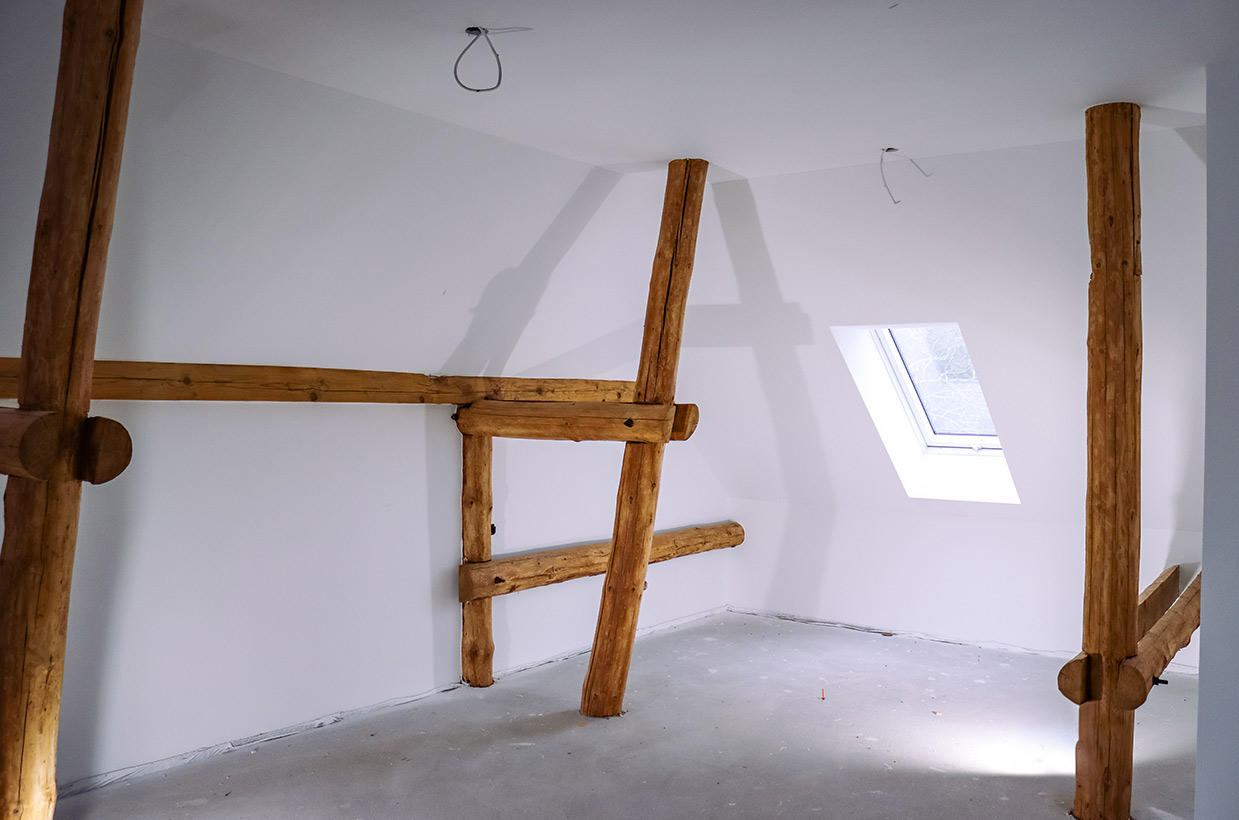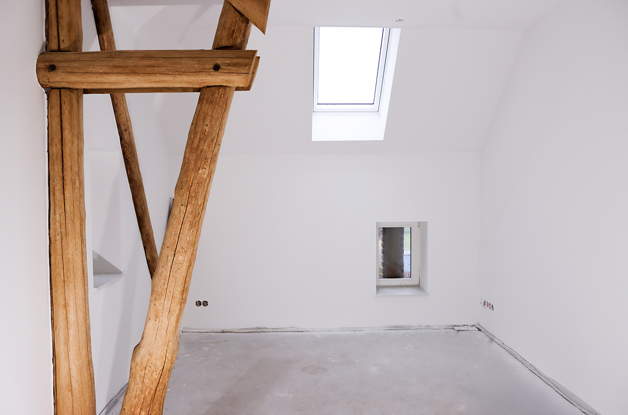Von den sichtbaren Decken- und Fachwerkbalken in den Wohnbereichen bis hin zur Neuverfugung des gesamten Gebäudes – hier wurden alle Details des historischen Gebäudes sorgfältig restauriert und zu neuem Leben erweckt.