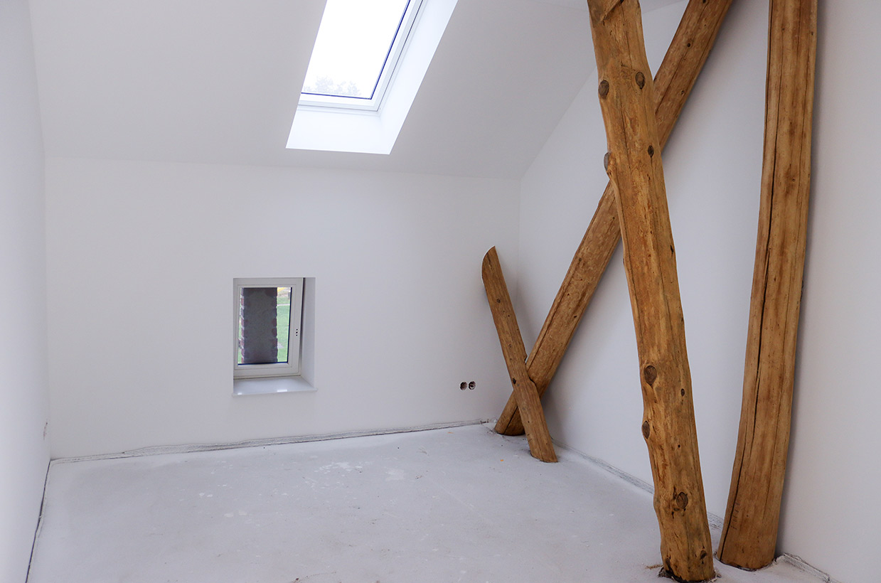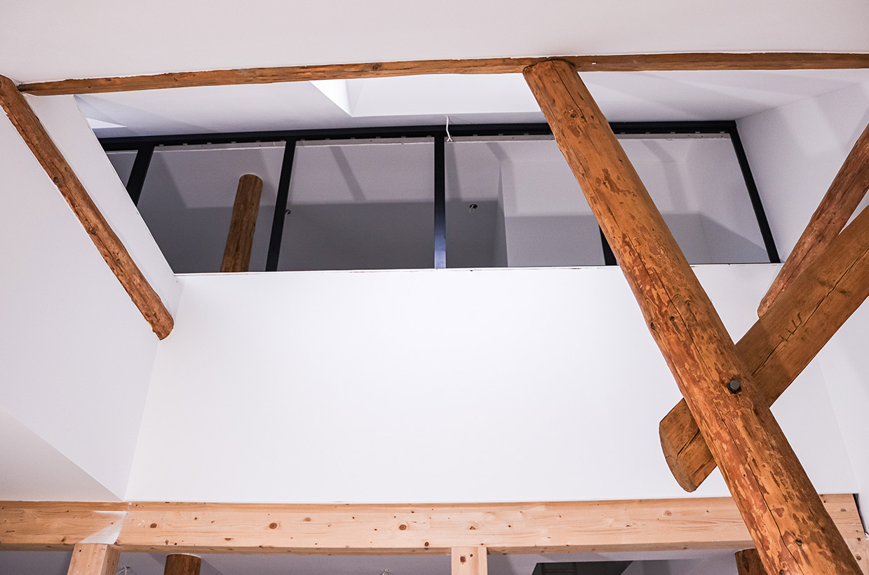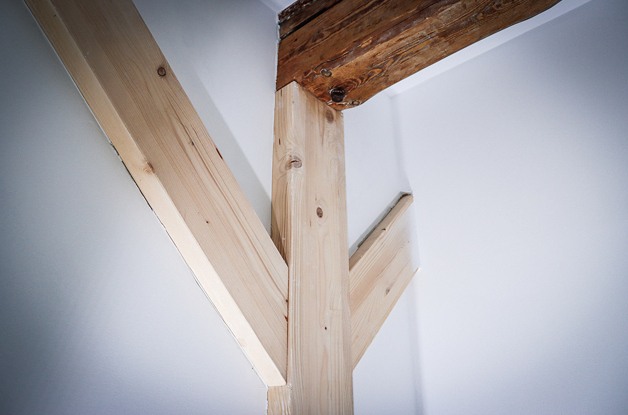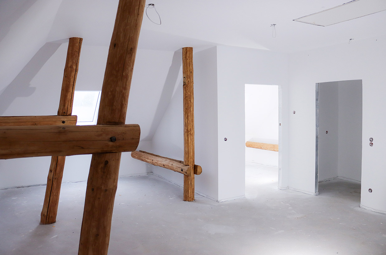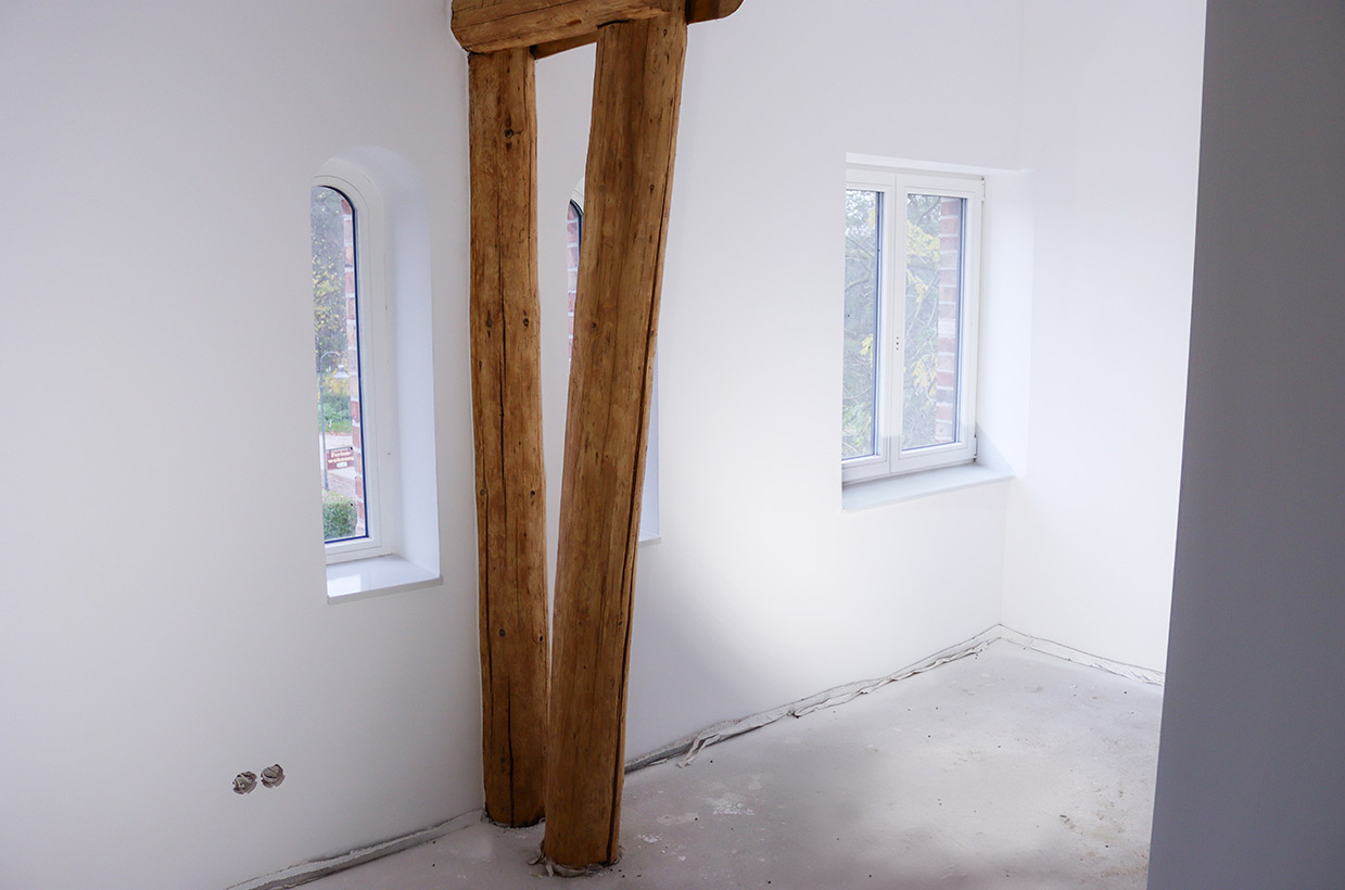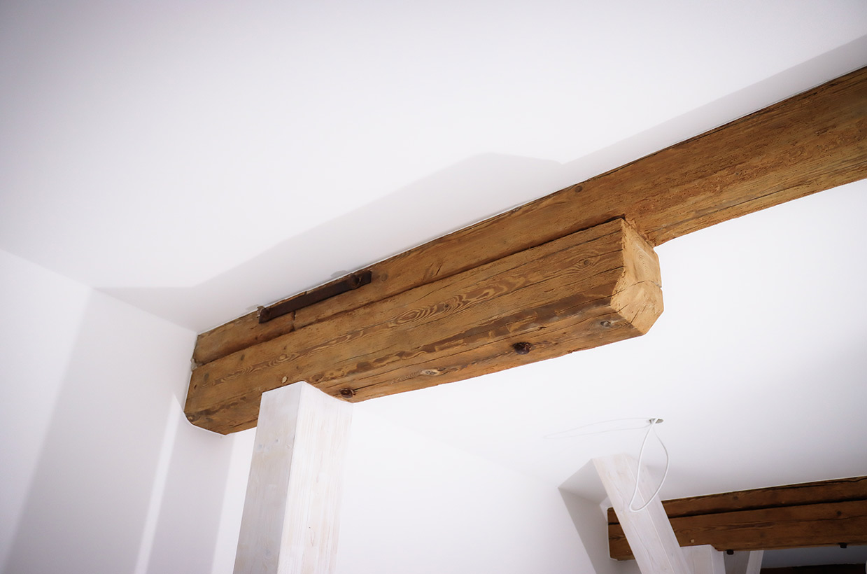 Von den sichtbaren Decken- und Fachwerkbalken in den Wohnbereichen bis hin zur Neuverfugung des gesamten Gebäudes – hier wurden alle Details des historischen Gebäudes sorgfältig restauriert und zu neuem Leben erweckt.