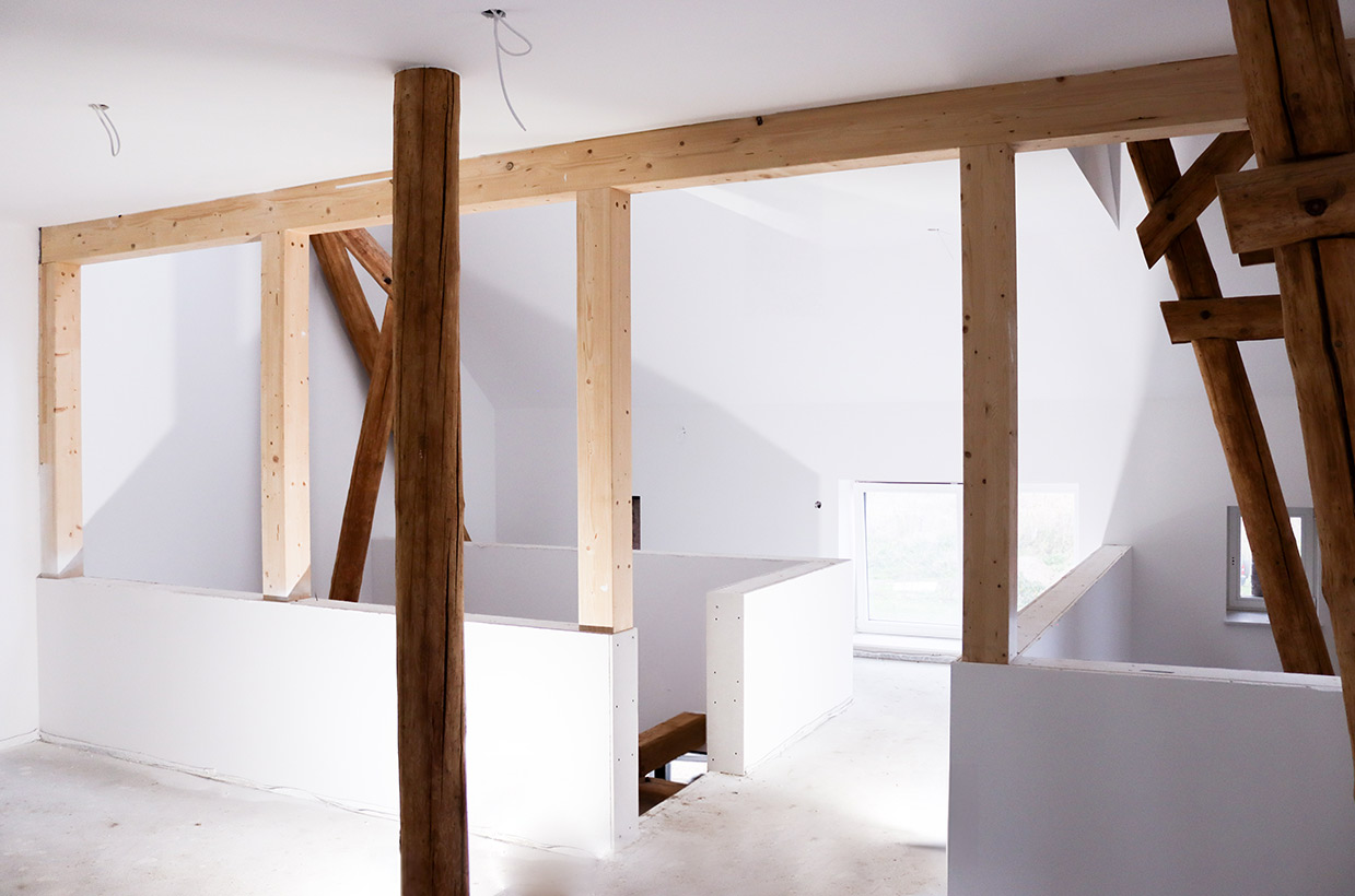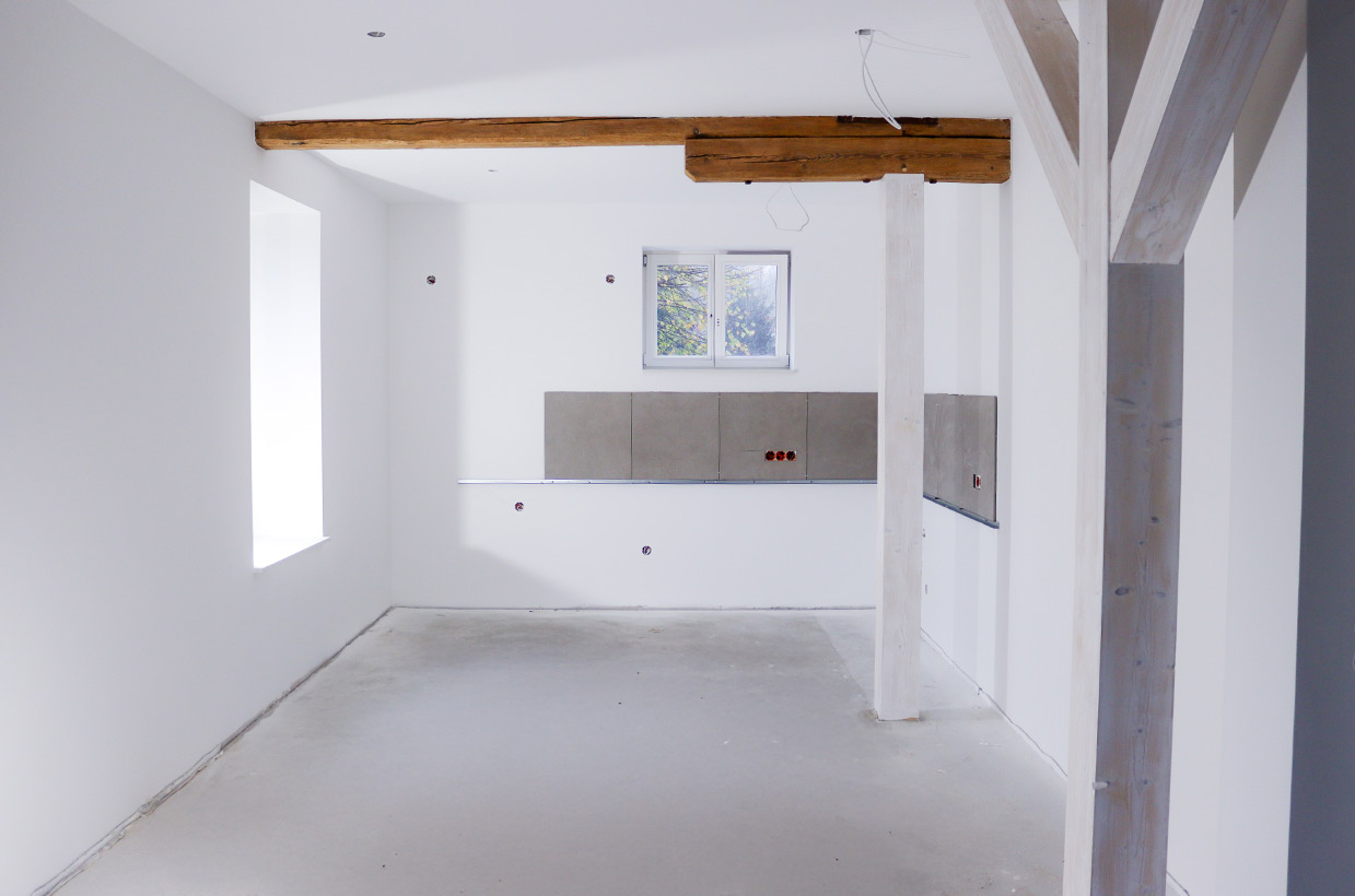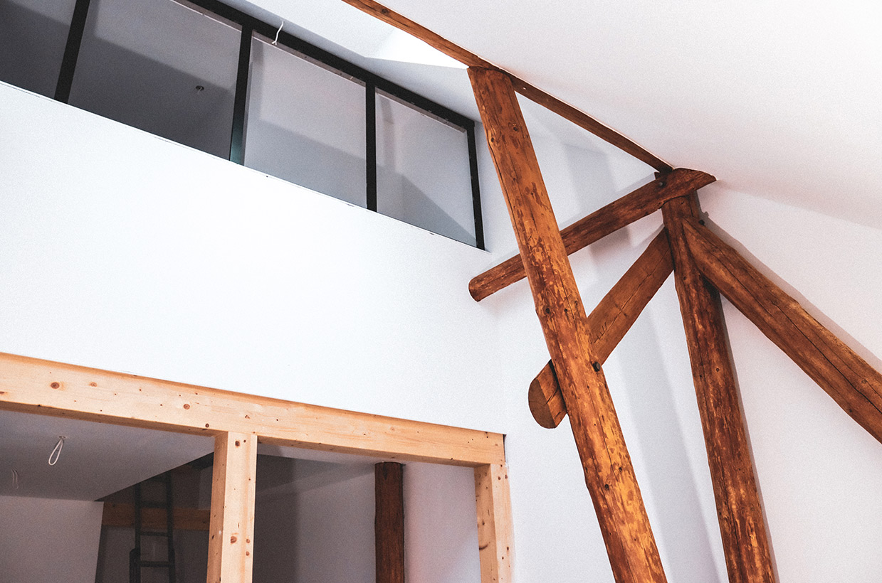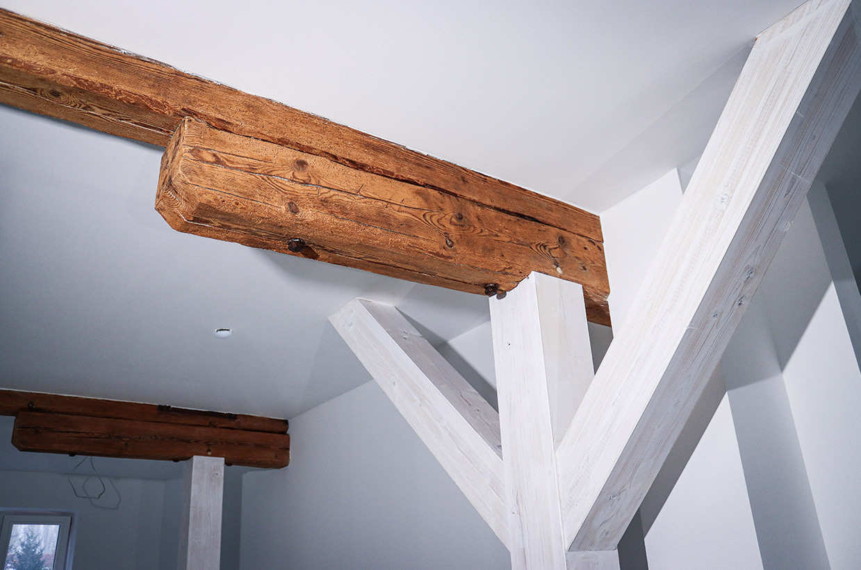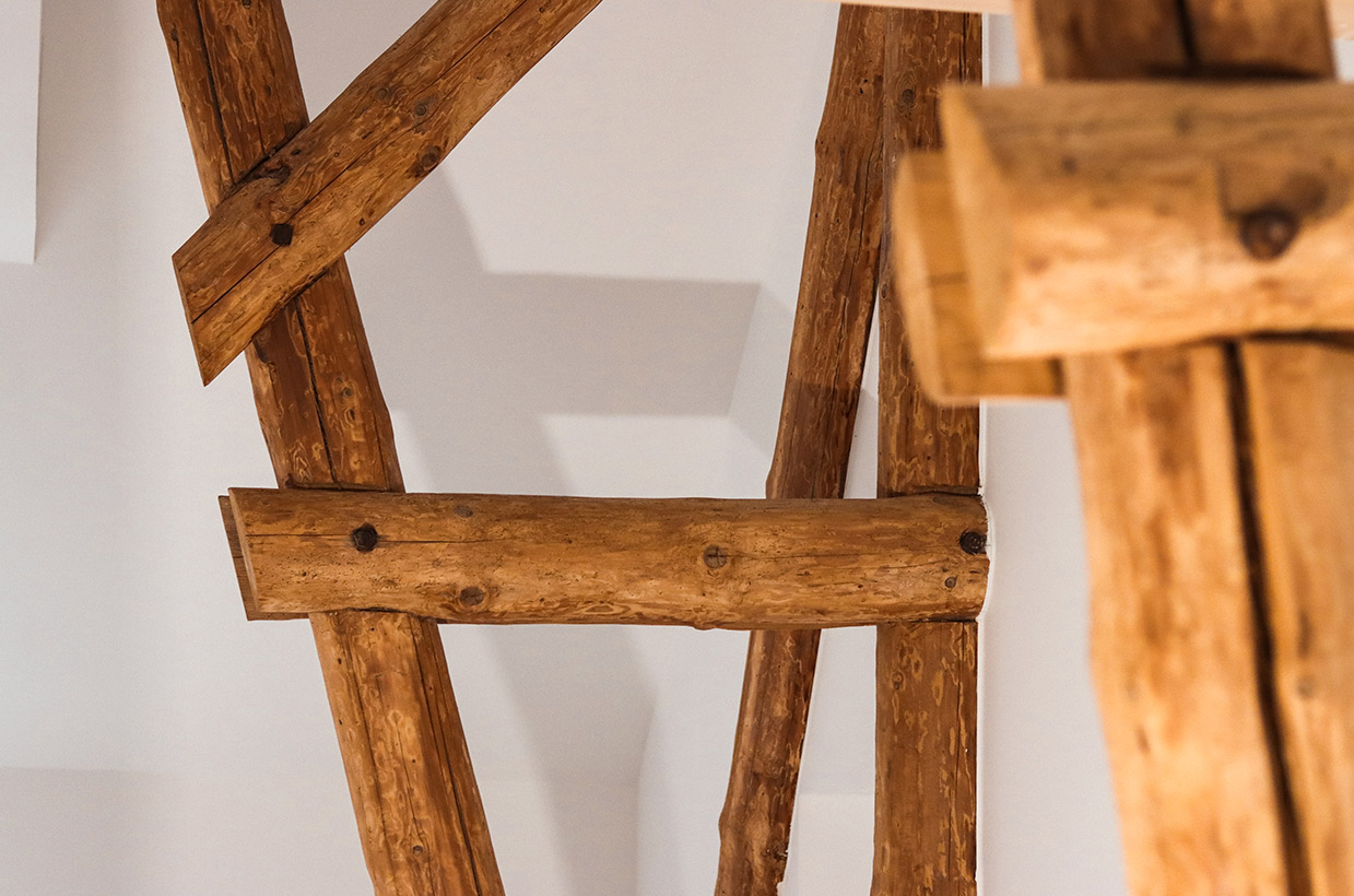 Von den sichtbaren Decken- und Fachwerkbalken in den Wohnbereichen bis hin zur Neuverfugung des gesamten Gebäudes – hier wurden alle Details des historischen Gebäudes sorgfältig restauriert und zu neuem Leben erweckt.