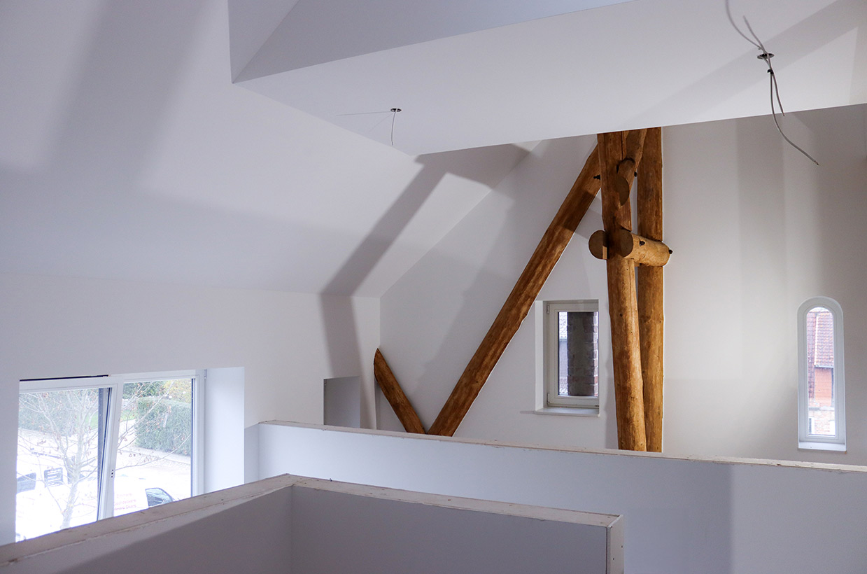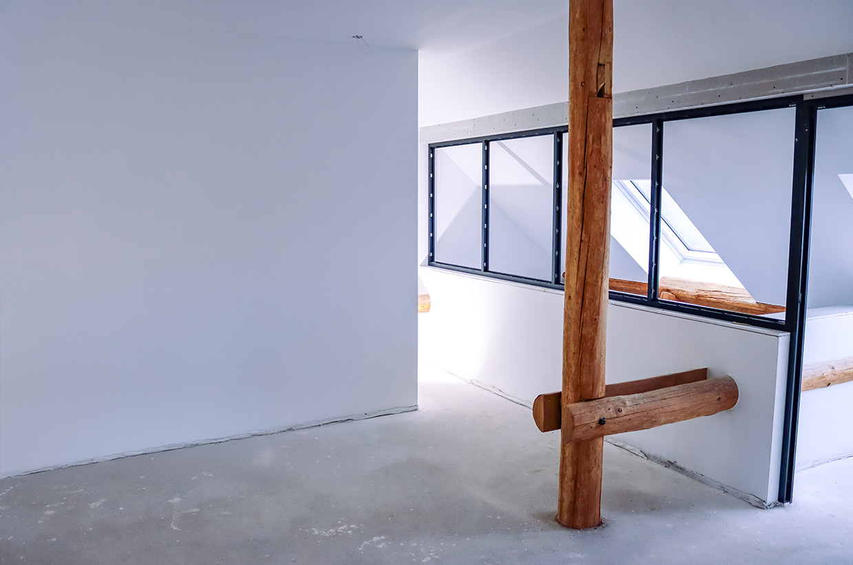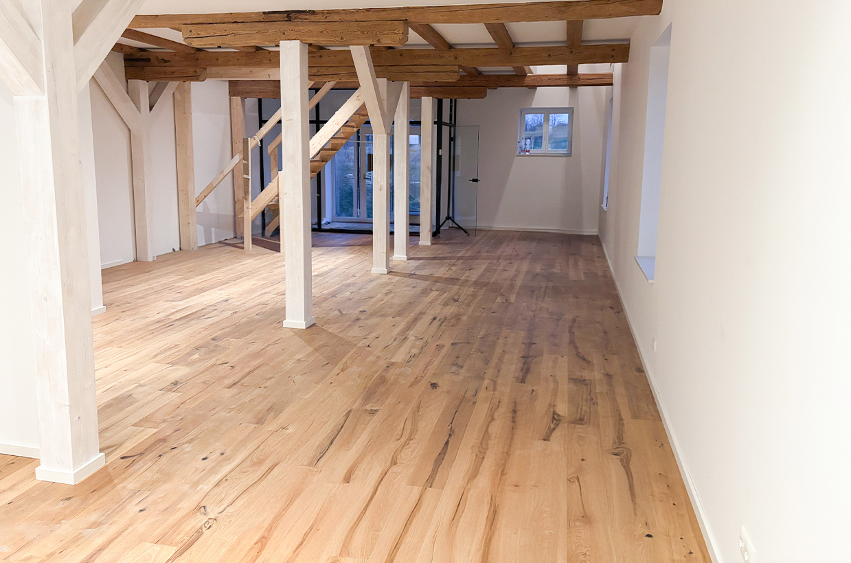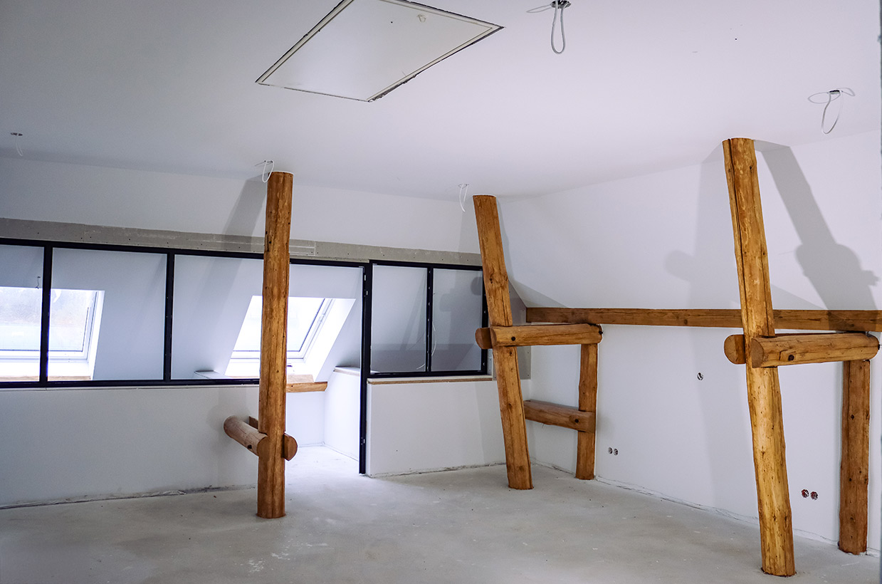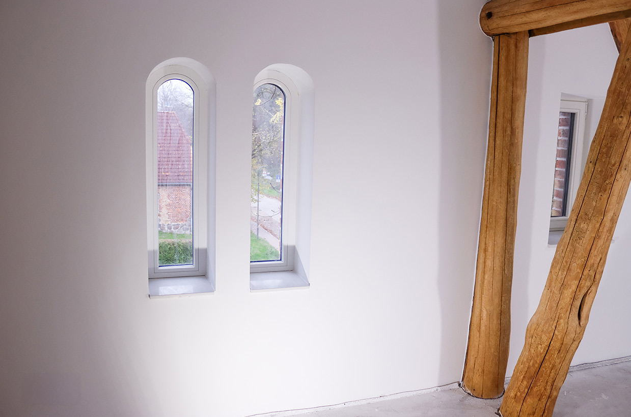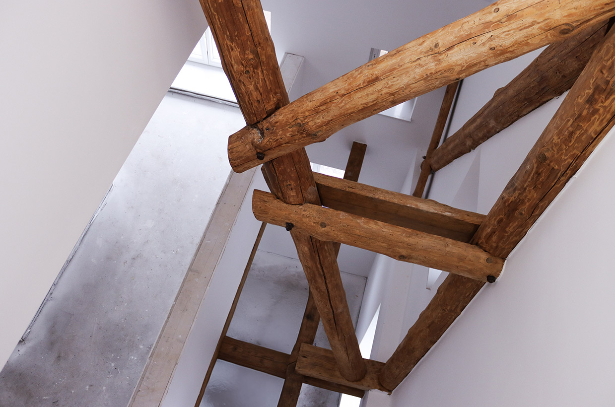 Von den sichtbaren Decken- und Fachwerkbalken in den Wohnbereichen bis hin zur Neuverfugung des gesamten Gebäudes – hier wurden alle Details des historischen Gebäudes sorgfältig restauriert und zu neuem Leben erweckt.