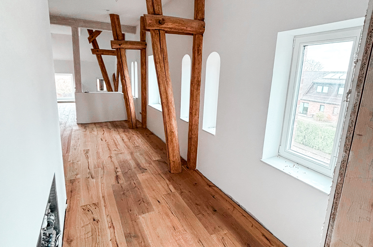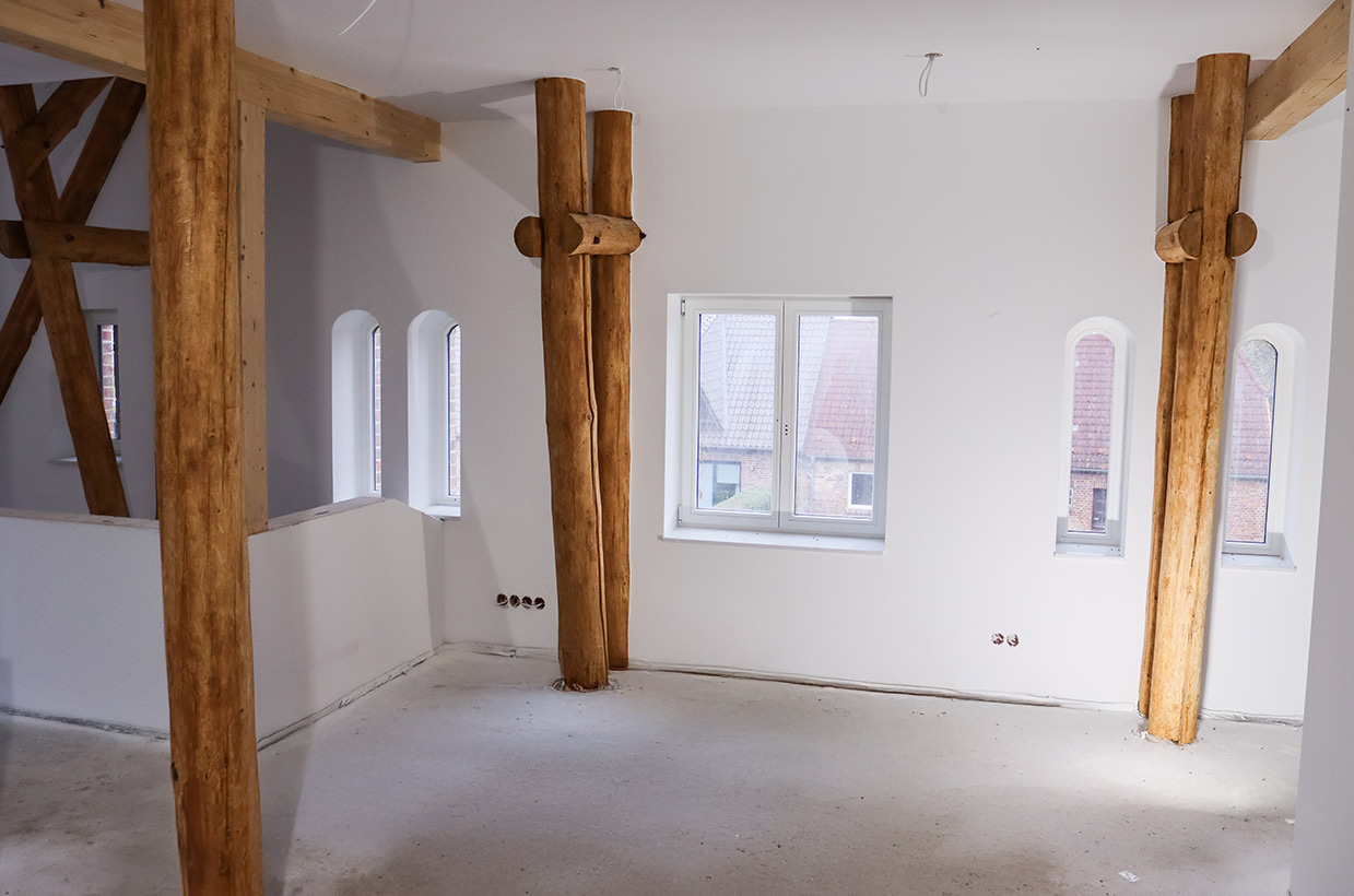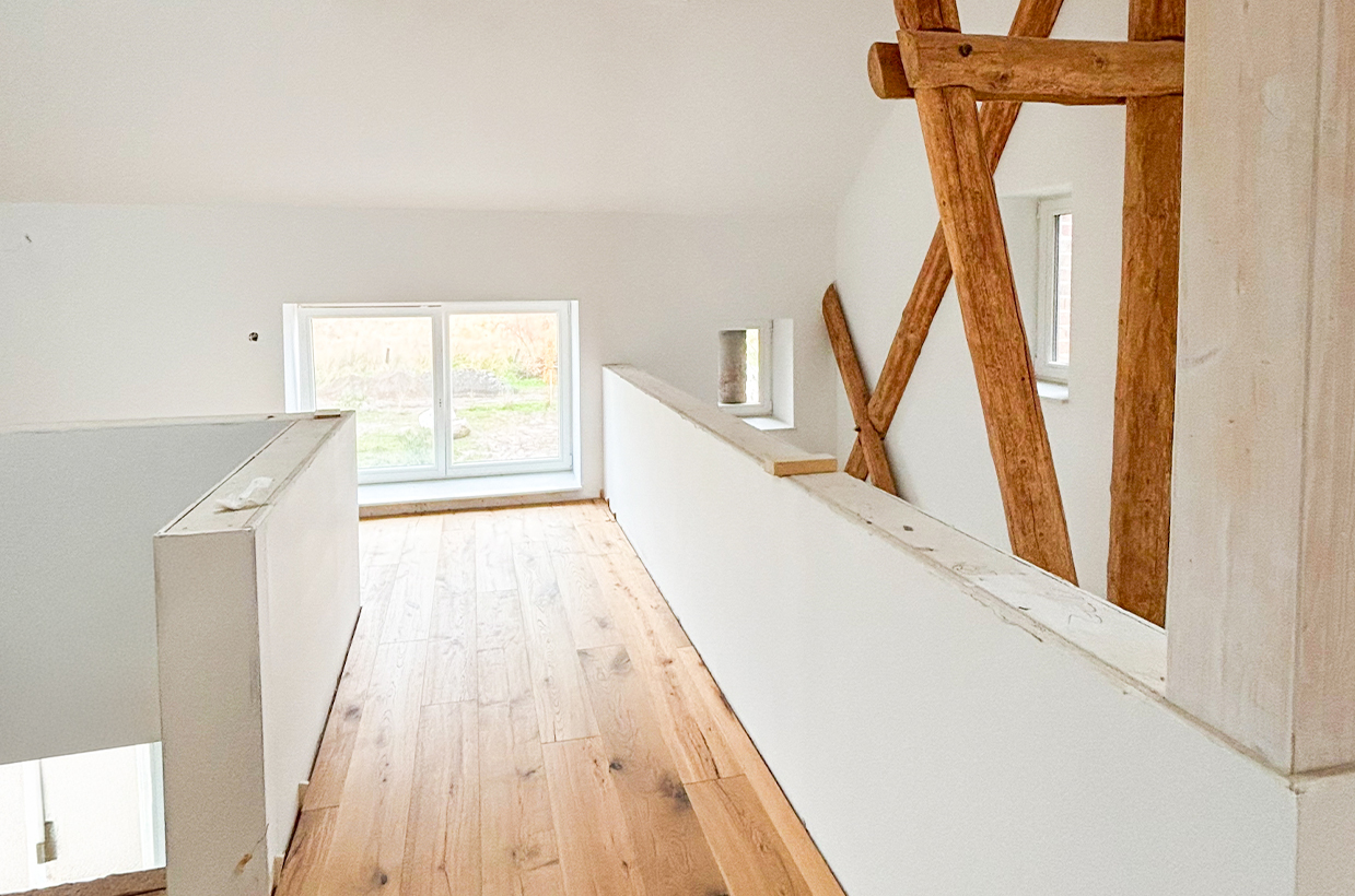 Dabei wurde großer Wert darauf gelegt, den einzigartigen Charme des Speichers zu bewahren und gleichzeitig modernen Wohnkomfort zu integrieren. Die großzügigen Wohnflächen, kombiniert mit den hohen Decken und den originalen Holzelementen, schaffen ein einzigartiges Wohnambiente, das historische Atmosphäre mit zeitgemäßem Design verbindet.