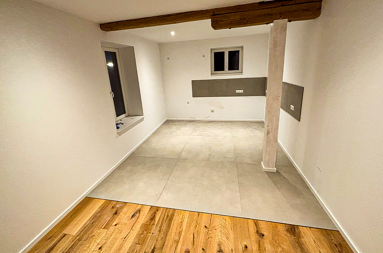 Komfortabel: Fußbodenheizung, Deckenspots und Glasfaser-Internet.